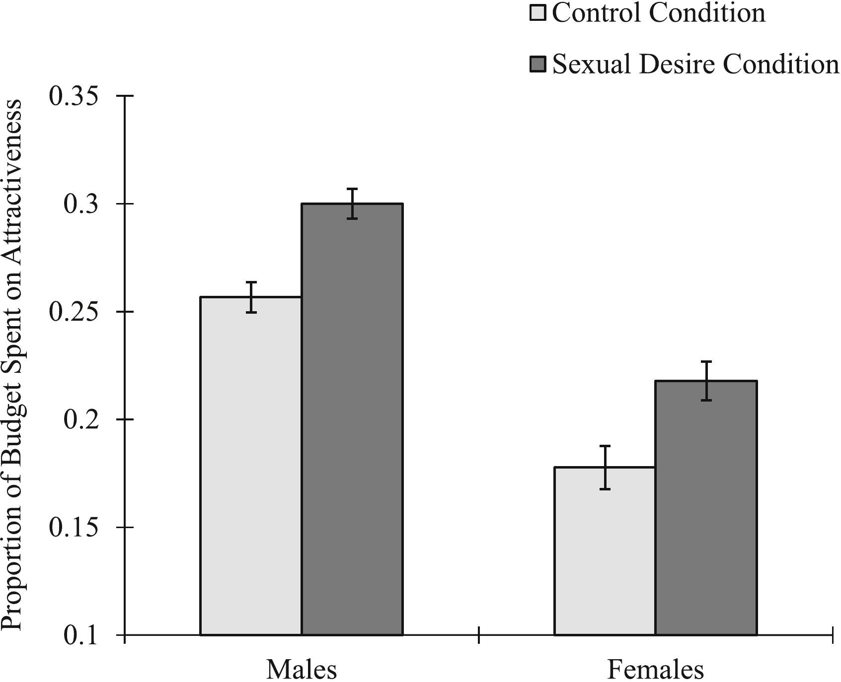 Effect of sexual desire priming on males’ and females’ prioritization of attractiveness. Note. Error bars represent standard errors. Source: Peters et al. (2025).