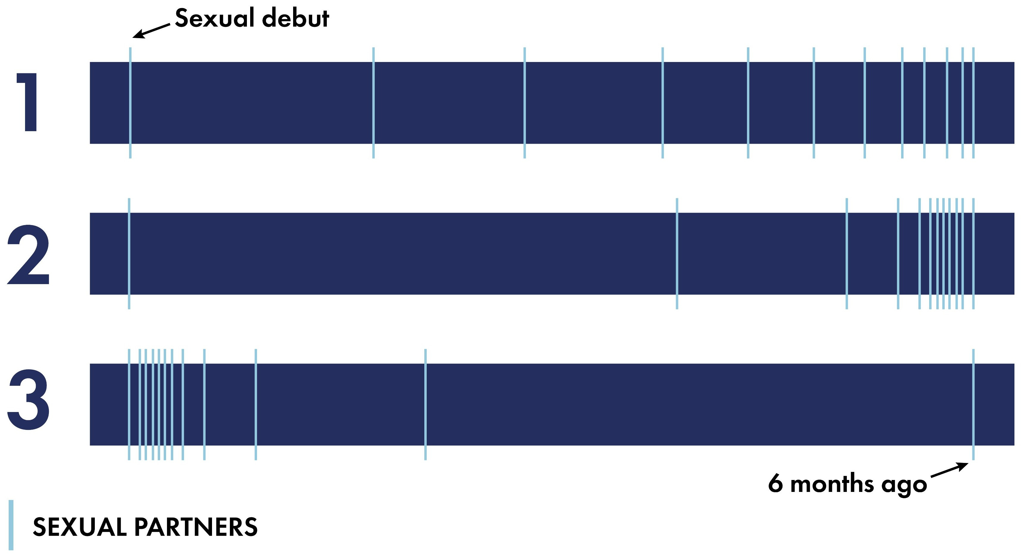 To give you an intuitive feel for the idea, imagine two people, both with four past partners. Person A racked them all up in the last six months. Person B spread them out over five years. If you were looking for a serious relationship, who would you be more likely to pick?