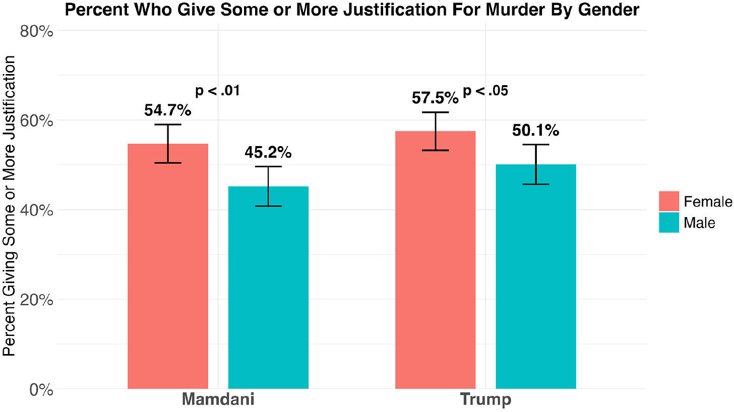 A recent US survey reports surprisingly high tolerance for political violence on both sides of the political spectrum - and an unexpected sex difference: Women are more likely than men to say murdering a politician is sometimes justified.