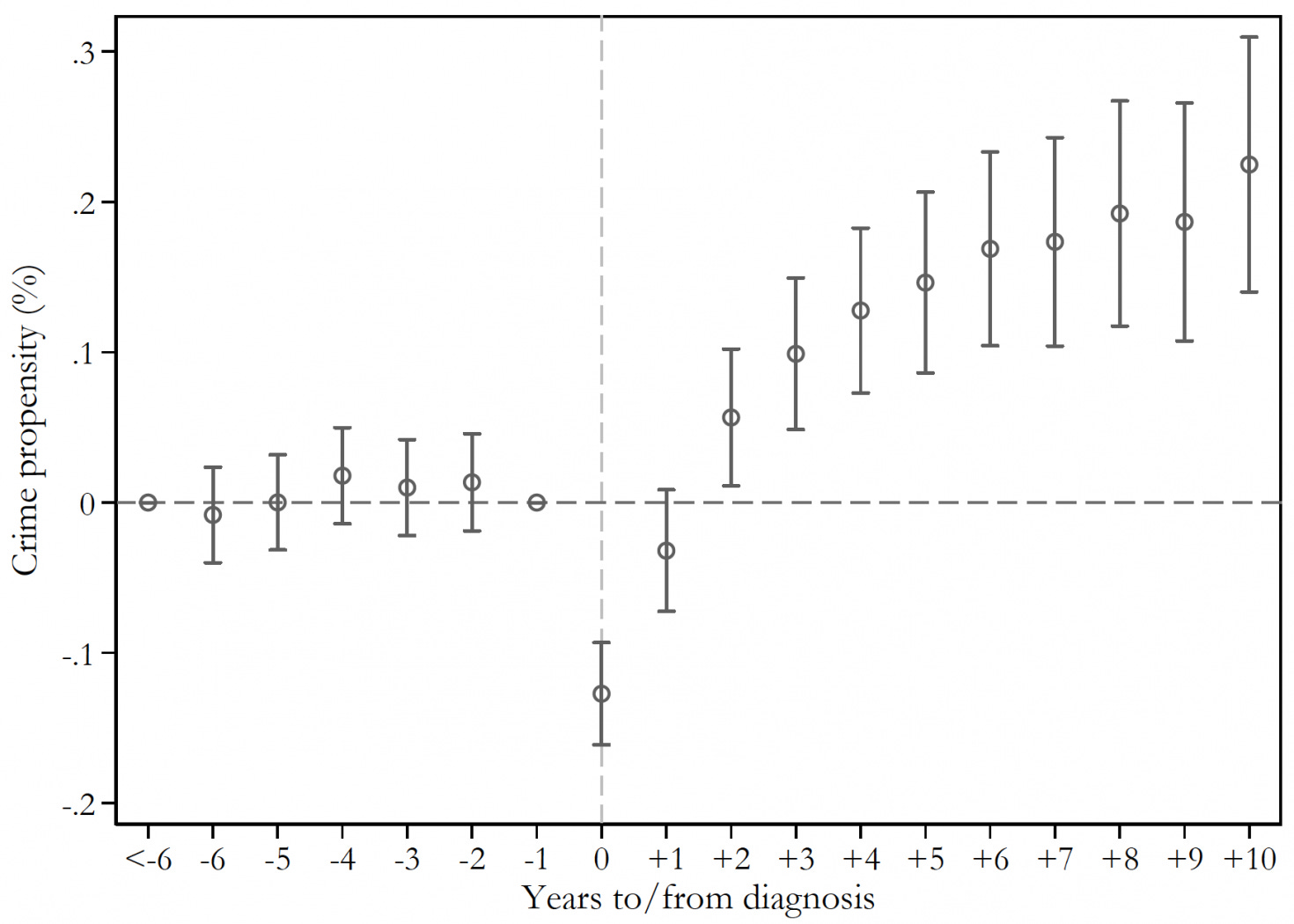 Cancer diagnoses are associated with a significant increase in criminal behavior. This seems to be the product of two main factors: financial stress and a reduced perceived cost of getting caught as a result of one’s impending demise. [Link.]
